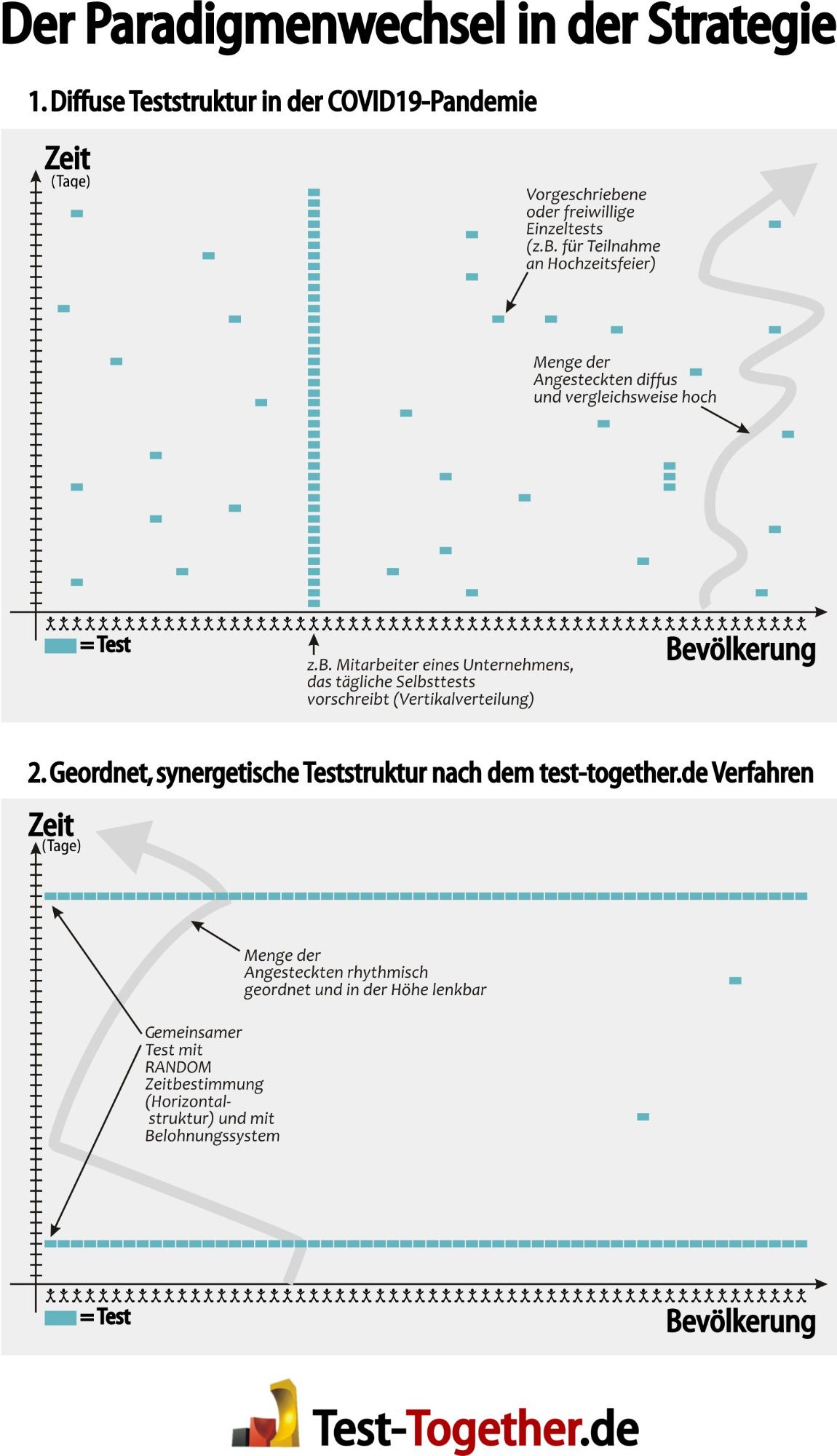 - So entsteht in der Zentrale eine Datenbank, die z.B. ergibt, dass 170.000 Menschen infiziert sind. Die offiziellen Fallzahlen legen jedoch nahe, dass nur 100.000 zu erwarten gewesen wären. Das System duldet jedoch diese Überschreitung von 70%. Hätte es hingegen 200.000 Infektionen gegeben, würde für alle infizierten Teilnehmer eine Zweittestauflage nach 6 Tagen erhoben. (Dadurch hätte statistisch ein "Vorsätzlichangestecker" nur eine Erfolgsquote von (8-6)/15=13%). Schummeln erweist sich somit als unattraktiv und findet dadurch kaum statt.)