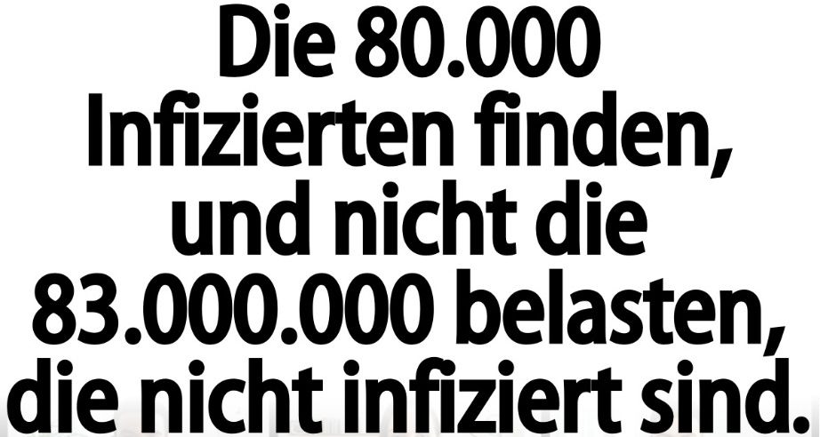 Projektkosten: (1000,- Euro x 3 Mitbewohner x 80.000 Angesteckte + 2 x 83mio Selbsttests + 24mio Arztkosten) x 5 solche Maßnahmen pro Jahr =