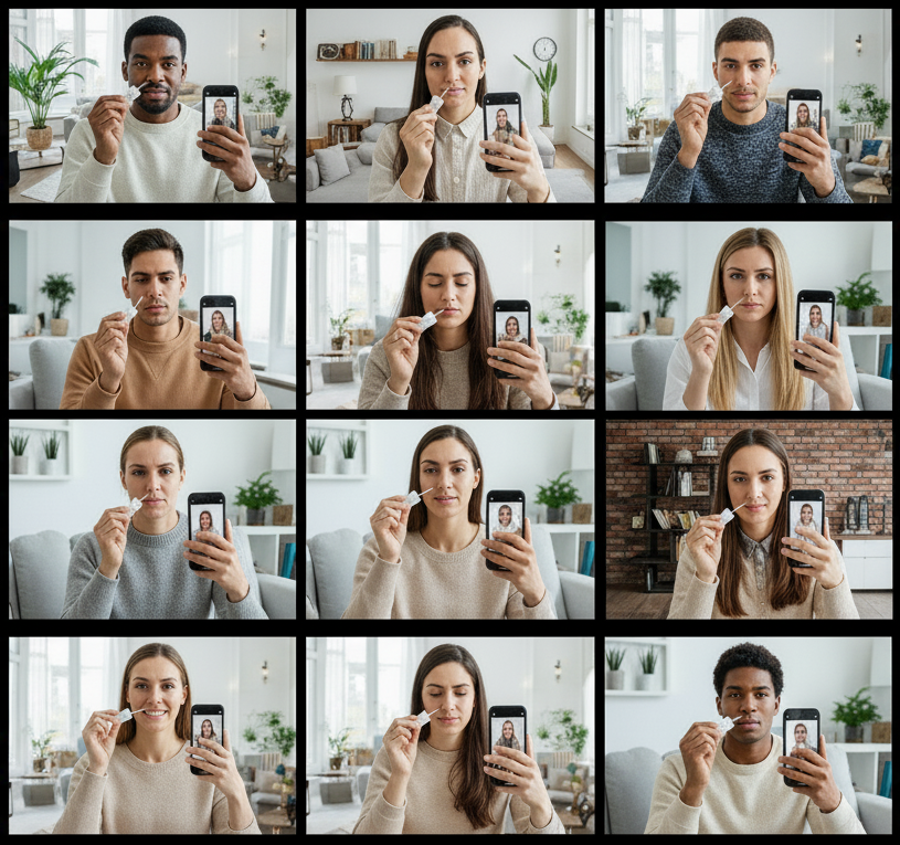 À une date fixée, 83 millions de personnes effectuent un autotest documenté par vidéo.