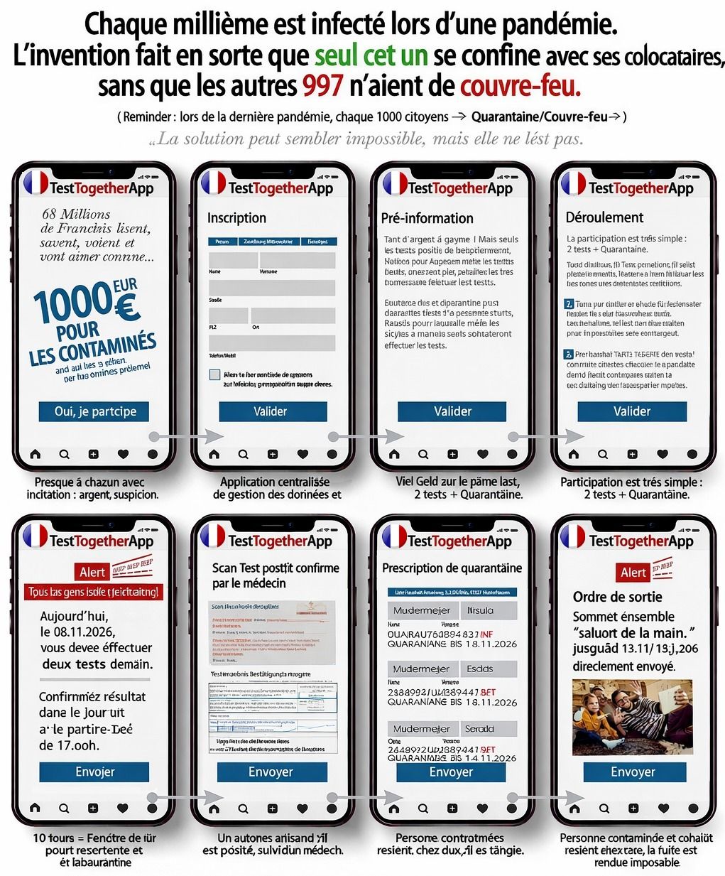 Cette invention permet de confiner uniquement les 80 000 personnes réellement infectées et leurs colocataires, et non les 83 000 000 autres personnes.