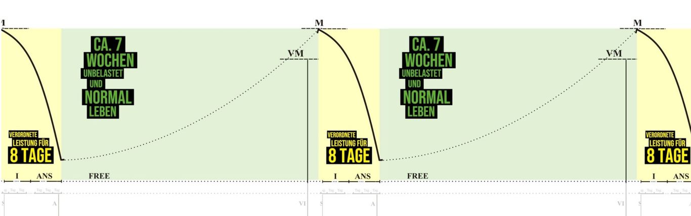 8 jours selon cette procédure, puis environ 7 semaines de vie normale sans effort, puis à nouveau 8 jours... :)