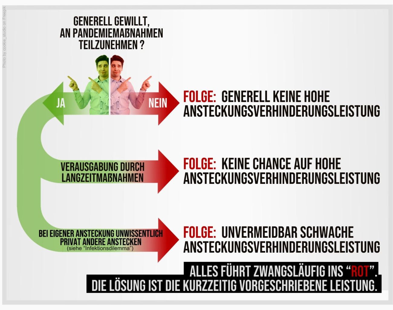 Eine massive Problematik innerhalb der Epidemiologie scheint darin zu liegen, dass der Mensch/Bürger als Leistungsträger zur Verhinderung von Ansteckungen bisher nicht im Vordergrund steht. Obwohl der einzelne Mensch der zentrale Akteur einer Pandemie ist, mit drastischen Leistungsunterschieden, vom Pandemie-Leugner mit geringer "Ansteckungsverhinderungsleistung" bis hin zum primärmotivierten Risikopatient mit hoher Leistung. Diesem Defizit soll die Einführung einer Leistungsorientierung/-terminologie beikommen.